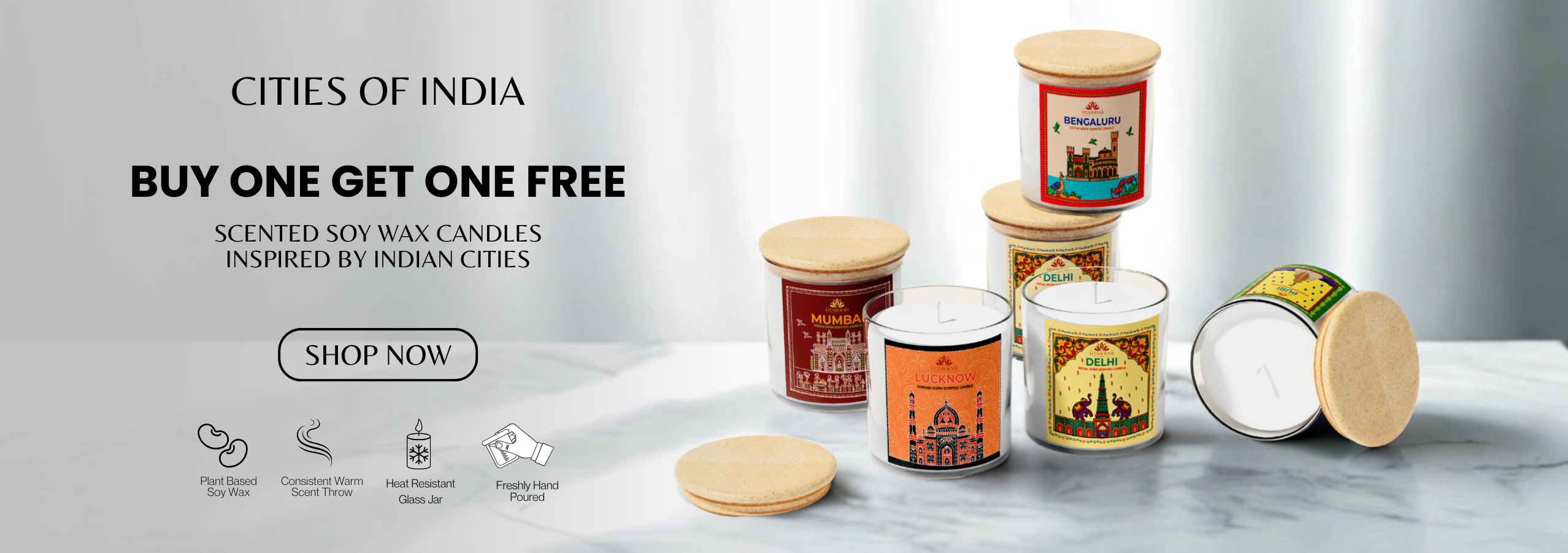 Step into the heart of India with Homerah’s Capital Cities of India Collection. A curated set of four luxury soy wax candles that capture the essence, culture, and aroma of India’s most iconic urban landscapes. Each fragrance reflects the unique spirit and heritage of a city, transforming your space into an olfactory journey.