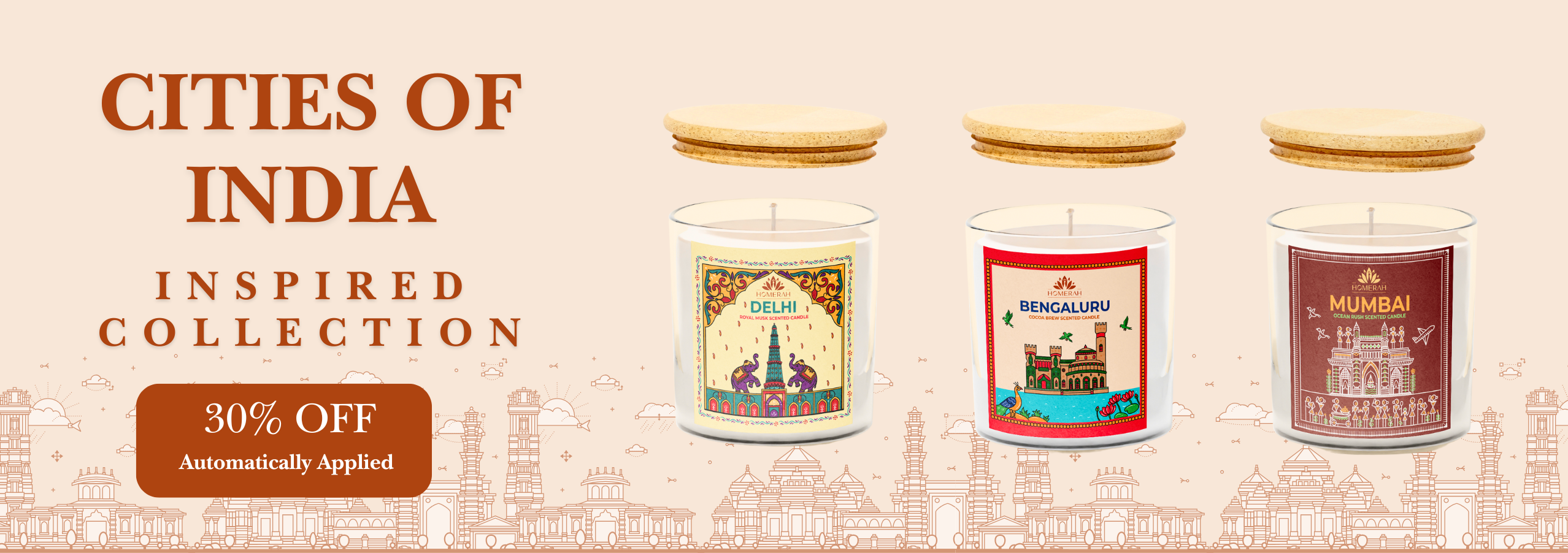 Step into the heart of India with Homerah’s Capital Cities of India Collection. A curated set of four luxury soy wax candles that capture the essence, culture, and aroma of India’s most iconic urban landscapes. Each fragrance reflects the unique spirit and heritage of a city, transforming your space into an olfactory journey.