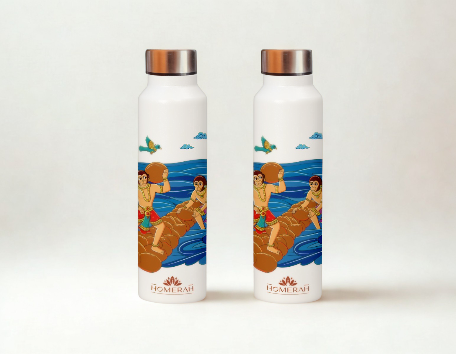 Homerah Epic Collection in Tanjore Ram Setu Gift Box - Set of 2 - Designer Stainless Steel Bottles x2