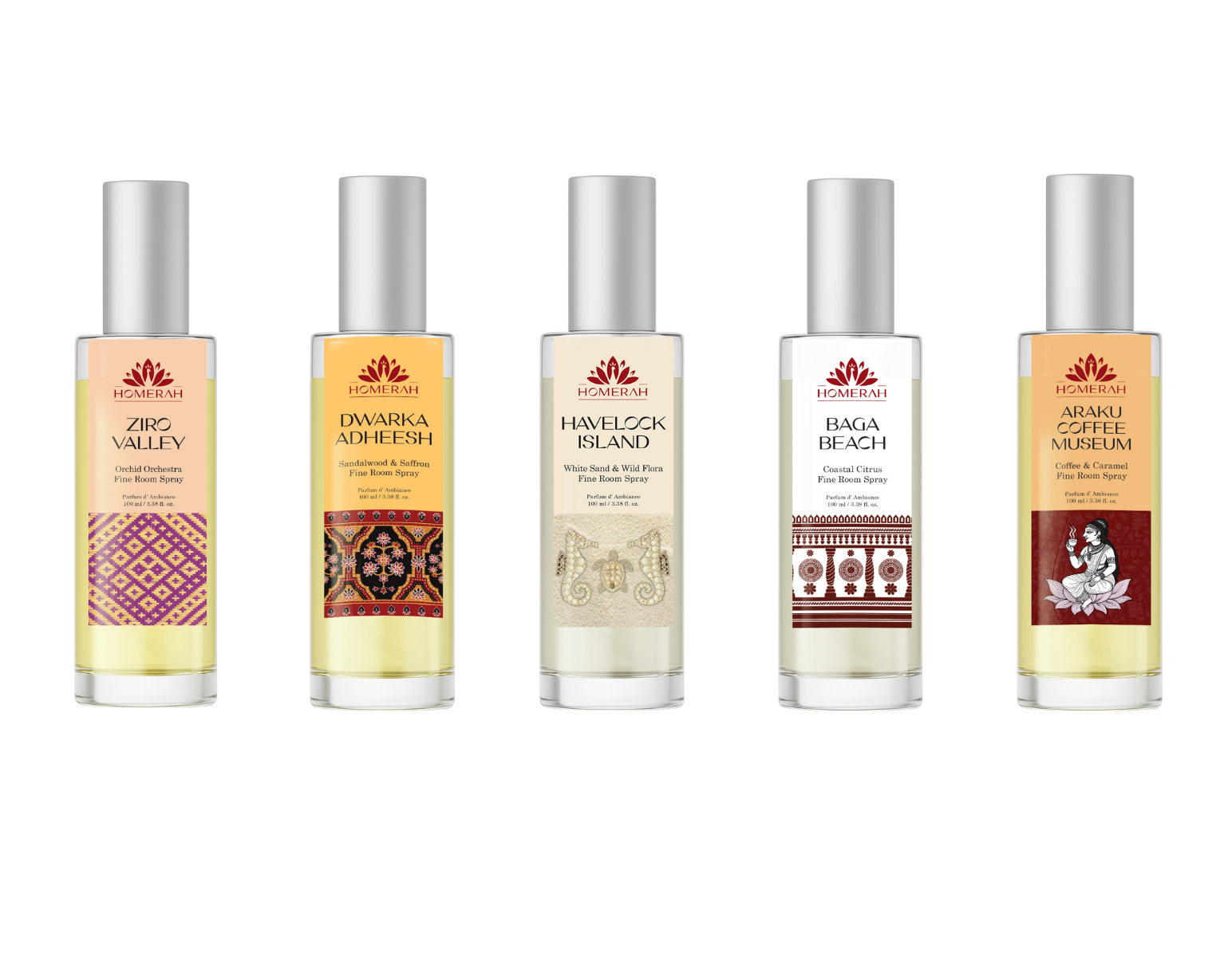 Unveil a sensory journey across India with Homerah’s Five Treasure Collection. A curation of five fine room parfums, each inspired by a destination where nature, culture, and fragrance converge. Presented in an exquisite Pattachitra Nabagunjara gift box, this collection celebrates the artistry of India through both scent and design.