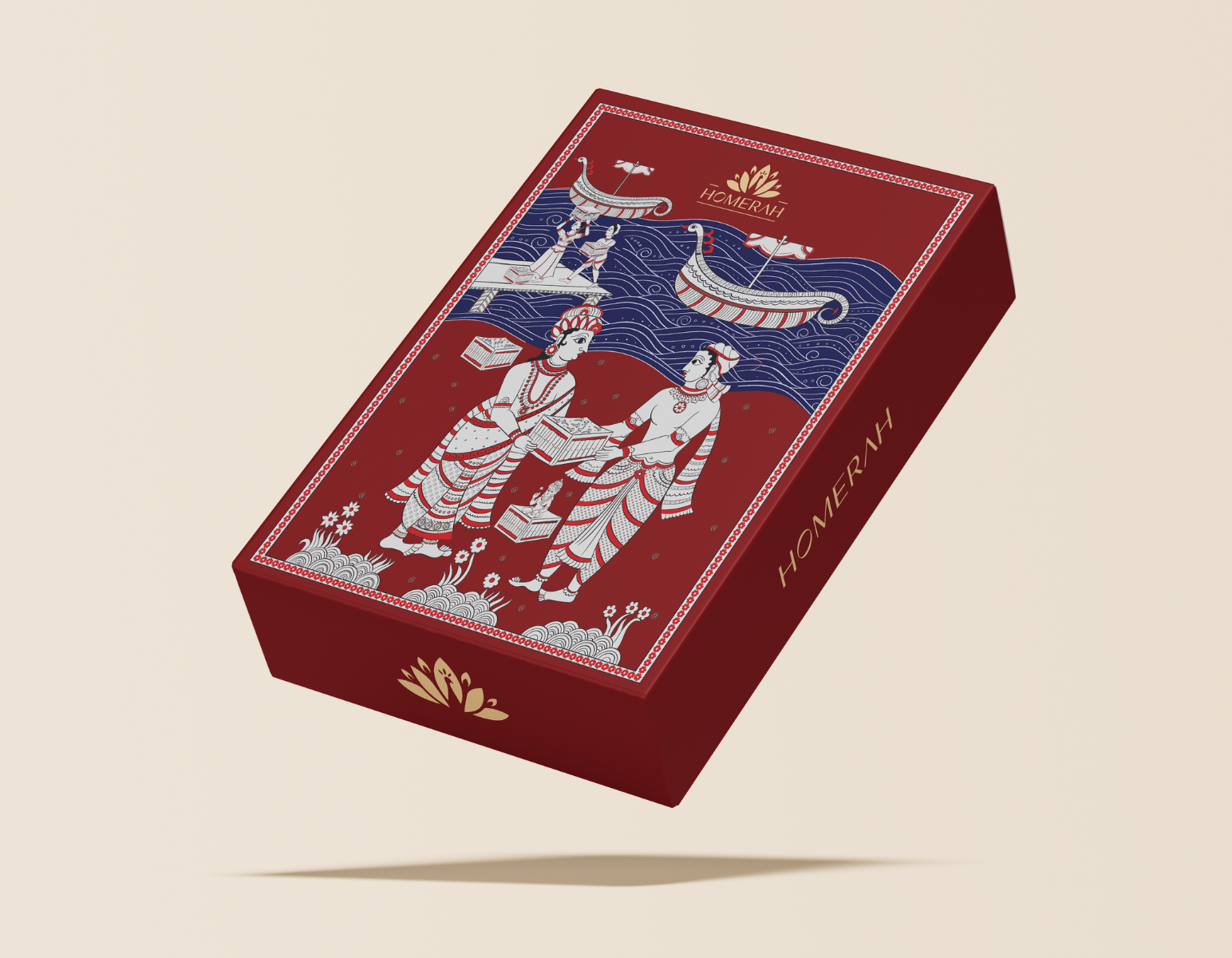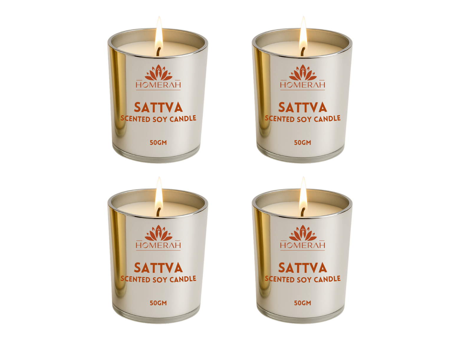 Homerah Light & Legacy Collection In Kalamkari Sea Trade Gift Box - Set of 4 Scented Soy Wax Luxury Candles - SATTVA (Lemongrass) x4